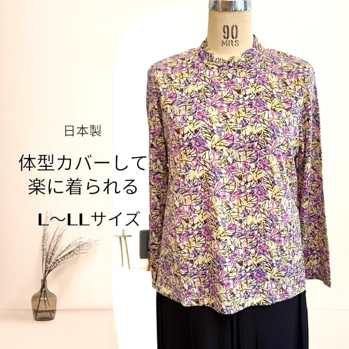 【日本製・手捺染】体型カバー ゆったり上品ブラウス|L〜LL|50代60代70代ミセス向け